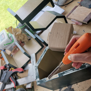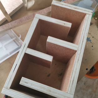 So now all the letters are freshly primed and left for drying. In the meantime, we decided to cut out little pull out door that will be later fixed to letter D.