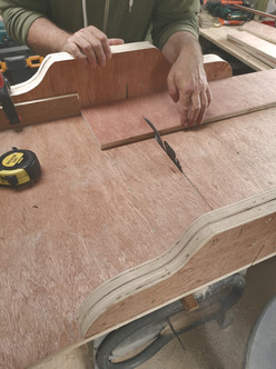 So, we got our main supply, 18mm thick plywood board, and began measuring sections for each letter (all letters vary in width). Dad wouldn't let me near the saw machine, so he had to cut the board into all necessary pieces. To ensure that we know where each piece is going, I numbered the sections on the drawings I made, and then I could number cut pieces accordingly.